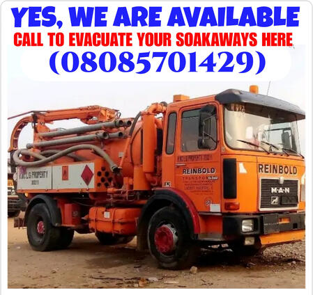 You Can Now Call Us At Anytime, On: (☎️08085701429), To Have Us Come To Evacuate Your Soakaways, Septic Tanks, Cesspits, Manholes, and Sewages Thoroughly Here In Lagos State By Our Team Of Experts.